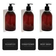 Dette brusesæt er den ultimative løsning til en stilfuld og velorganiseret bruser. Sættet indeholder tre elegante sæbepumpeholdere, som nemt og hurtigt monteres ved hjælp af 3M-tape, der allerede er påført produktet. Du slipper altså for at bore huller i væggen, hvilket gør installationen både hurtig og enkel. Til sæbepumpeholderne medfølger der tre brune sæbepumper med et moderne og stilrent design. Pumpehovederne er lette at bruge og sikrer en jævn dosering af indholdet. For at gøre det endnu nemmere medfølger der etiketter med teksten "Shampoo," "Conditioner" og "Body Wash," som kan sættes direkte på flaskerne. Dette gør det enkelt at finde det rigtige produkt hurtigt, samtidig med at det skaber et ensartet og elegant udtryk. Med dette sæt får du ikke kun en praktisk opbevaringsløsning til bruseren, men også en æstetisk tiltalende løsning, der er let at installere og vedligeholde.