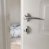 Dørgrebet leveres med komplet monteringssæt og tilhørende nøgleplade.