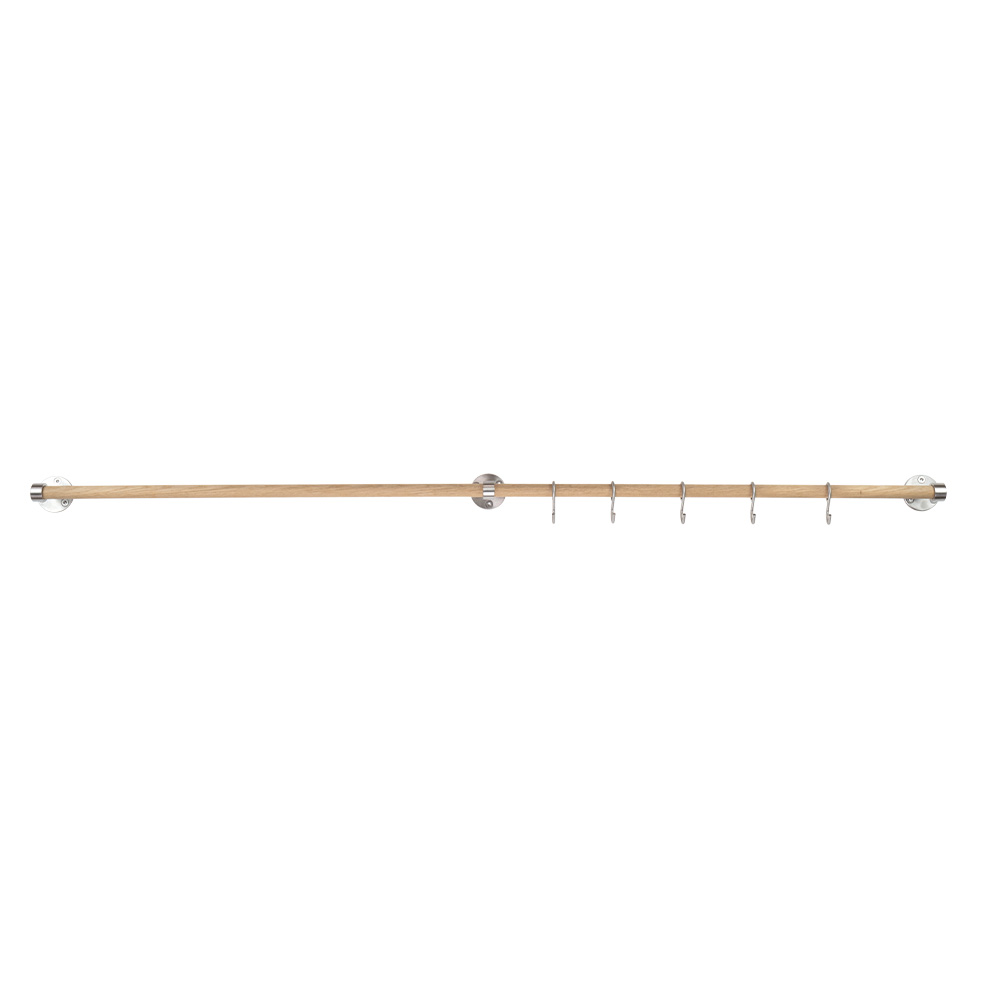 Forlængerstang Aveny i ubehandlet eg til Køkken Gelænder Aveny. Indeholder holdere i børstet rustfrit stål, 3 kroge og skruer.
