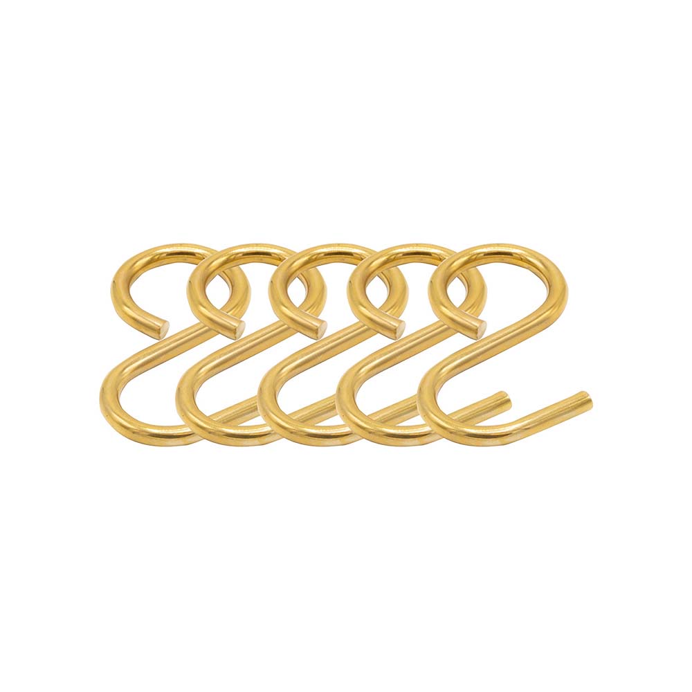 Pakken indeholder fem knager af poleret ubehandlet messing - hvilket betyder, at knagene med tiden patinerer og får en smuk unik karakter. Krogene kan let poleres med en blød, let fugtig klud for at genskabe dens oprindelige glans.