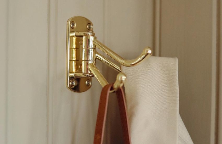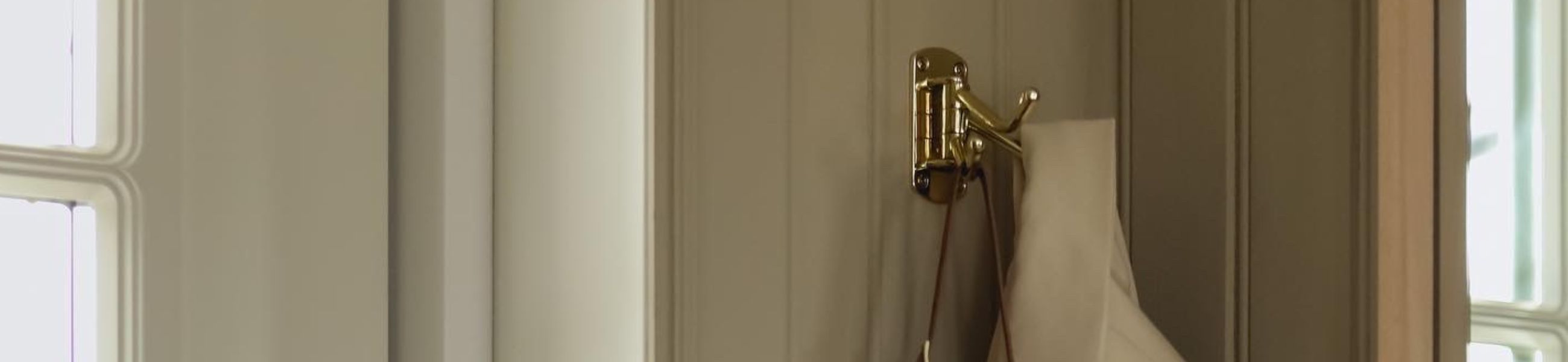 - Badeværelse – En elegant messingkrog er perfekt til håndklæder og badekåber.