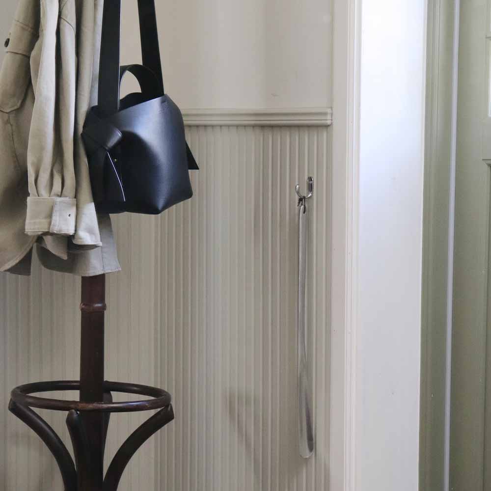 Knage Viskan er en lille simpel krog, der passer både til hjemmet og i offentlige miljøer som restauranter og kontorer. Knagen fås i fire forskellige designs; poleret messing, poleret krom, børstet krom og mat sort.