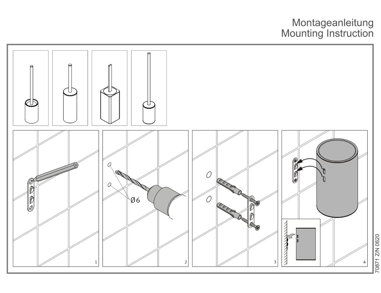 Toiletbørsten er udstyret med et plastlåg og en plastikindsats, hvilket giver ekstra holdbarhed og nem rengøring. Det fleksible design gør, at den kan stå stabilt på gulvet eller hænges op på væggen, alt efter hvad der passer bedst i dit badeværelse. Monteringssæt til vægmontering medfølger.