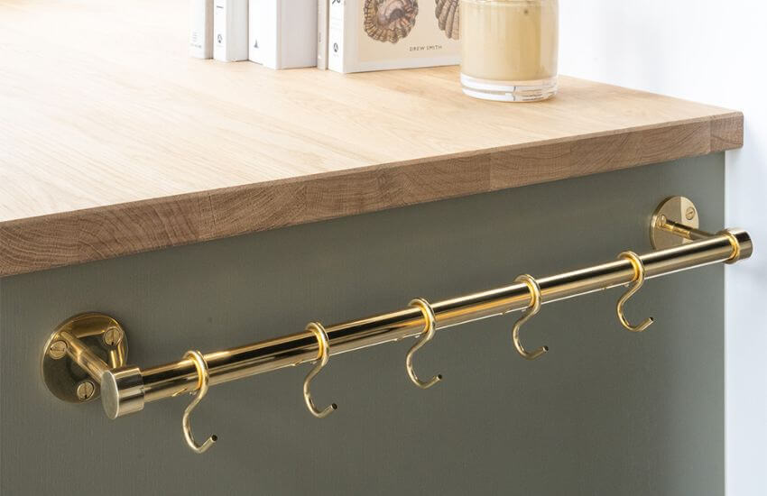 Køkkenstang Aveny - 600mm - Komplet - Poleret Ubehandlet Messing
